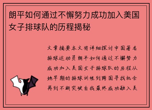 本文将深入探讨英格兰球员贾登·桑乔的技术突破与多特蒙德未来规划,重点分析边锋的成长与挑战。桑乔在多特蒙德的成长轨迹和技术特点,为他成为现代足坛最具潜力的年轻球员之一提供了强有力的证明。随着他个人技术的...